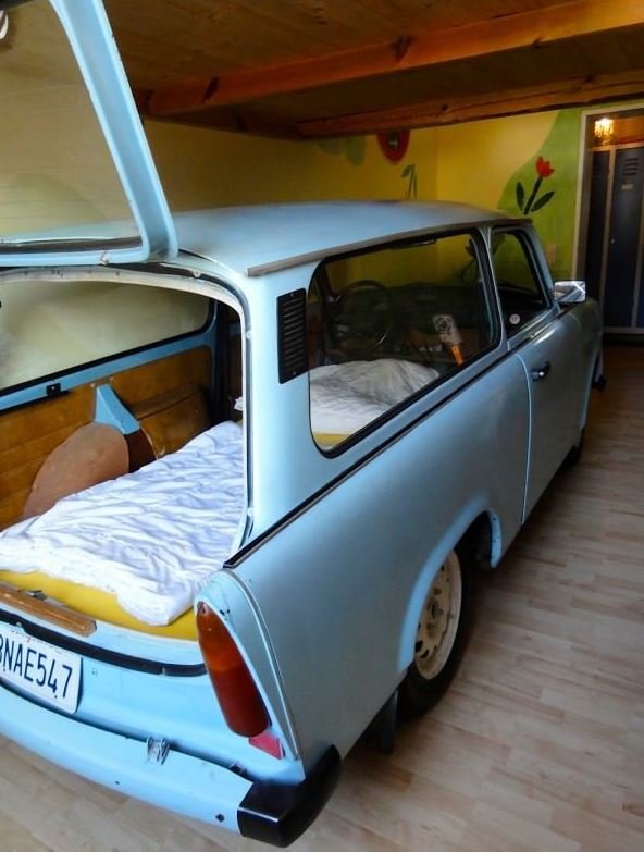 I wasn’t joking about the car… We stayed in the Hostel Lollis with a Trabant for a bed.